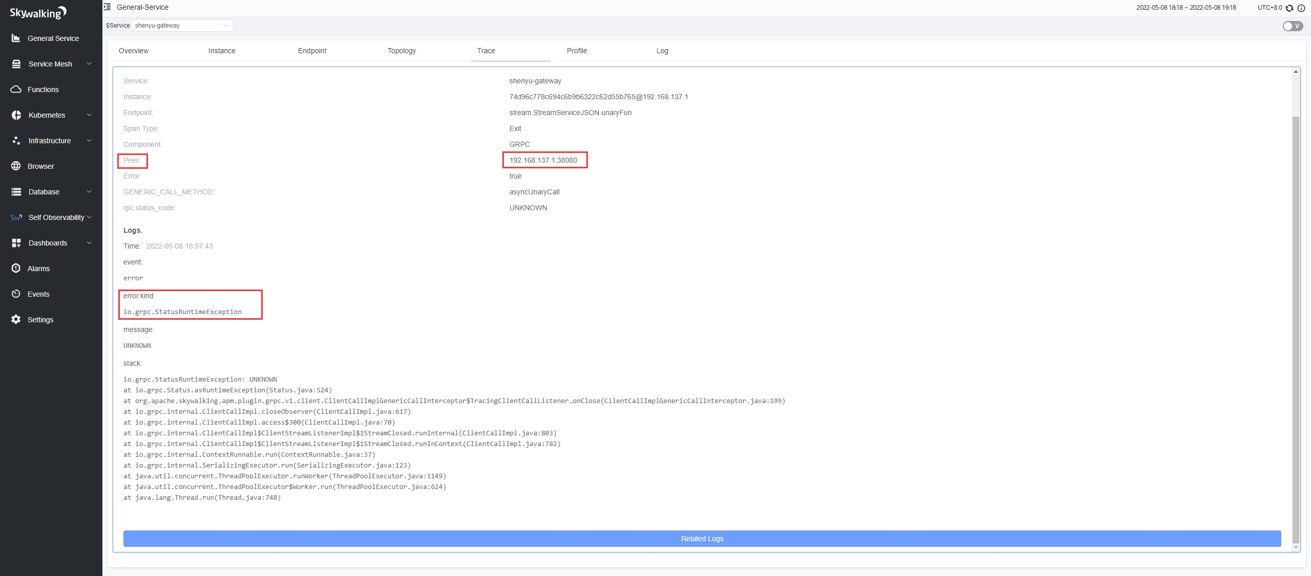 The existing SkyWalking gRPC plugin only supports calls initiated by way of stubs. For the gateway there is no proto file, the gateway takes generalized calls (not through stubs), so tracing RPC requests, you will find that the link will break at the gateway node. In this case, it is necessary to make the gRPC plugin support generalized calls, while at the same time needing to remain compatible and not affect the original tracing method. This is achieved by determining whether the request parameter is a DynamicMessage, and if it is not, then the original tracing logic through the stub is used. If not, then the original tracing logic via stubs is used, and if not, then the generalized call tracing logic is used. The other compatibility is the difference between the old and new versions of gRPC, as well as the compatibility of various cases of obtaining server-side IP, for those interested in the source code.