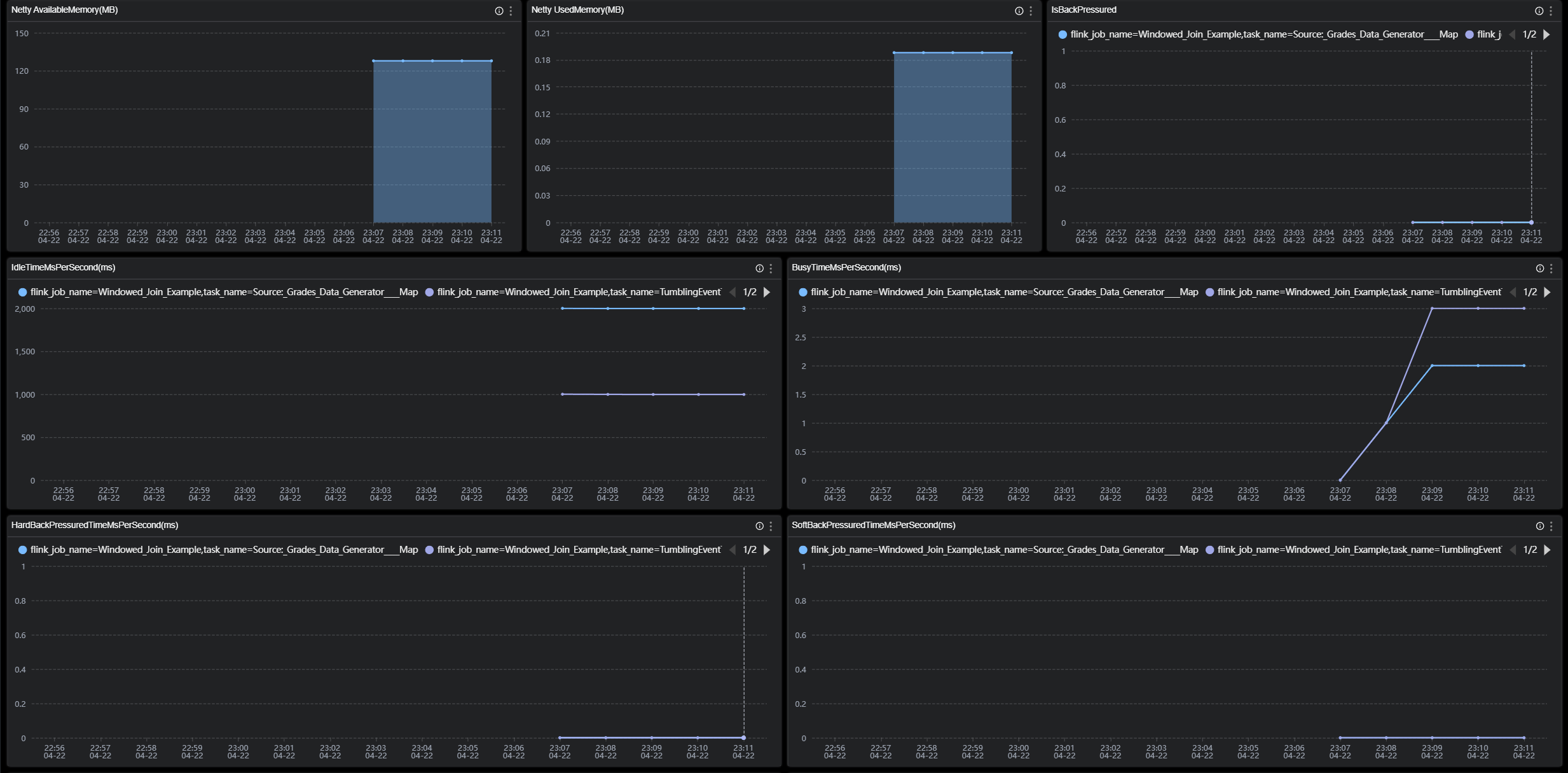 • IdleTimeMsPerSecond:The idle time per second of the TaskManager node.