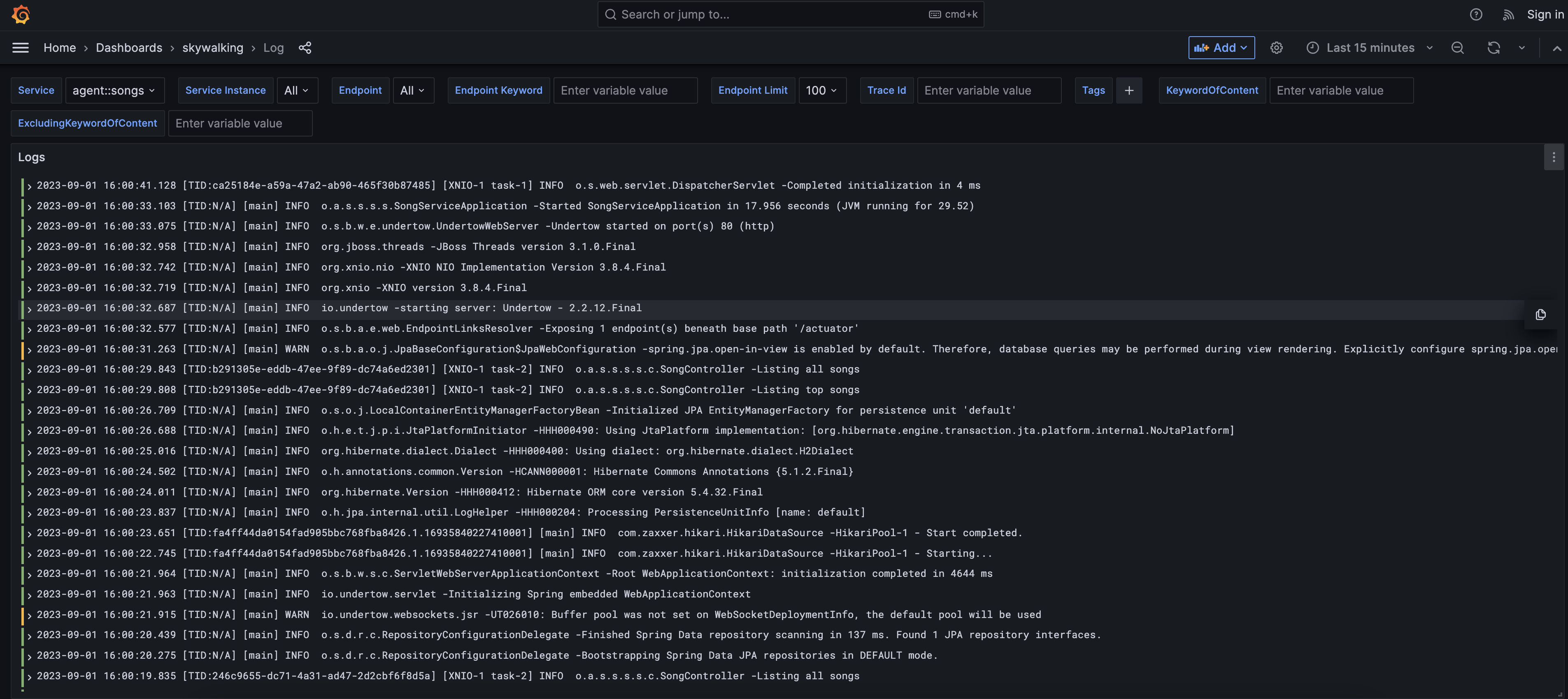 - Newly added support for Loki LogQL and Grafana Loki Dashboard for SkyWalking collected logs